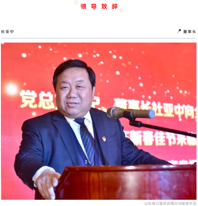 董事长致辞统筹大局,明确公司发展战略,为公司发展制定方向。神力索具将再接再厉,精于工、匠于心、品于行,致力于创新、发展,服务客户,回报社会。