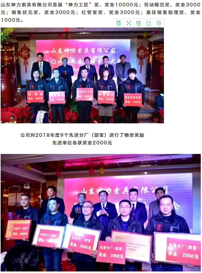 取得的不平凡的业绩及来自八方宾客的赞誉。明确了2019年是神力索具深耕细作、创新发展的关键之年,平凡却也伟大的神力人将再接再厉,再创佳绩!