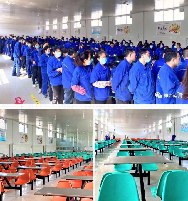 另外,经公司领导决定,新餐厅将试运营一个月!在试运营期间,员工每日早、中、晚三餐所有菜品、主食、饮品等全部免费,正式运营后,公司员工将享受每餐只需一元的员工福利!在疫情期间,公司领导为响应国家号召,降低人员聚集程度,将安排员工分批次就餐,每次就餐人数220人;当疫情结束以后,神力索具新餐厅可达到500人同时就餐的标准。