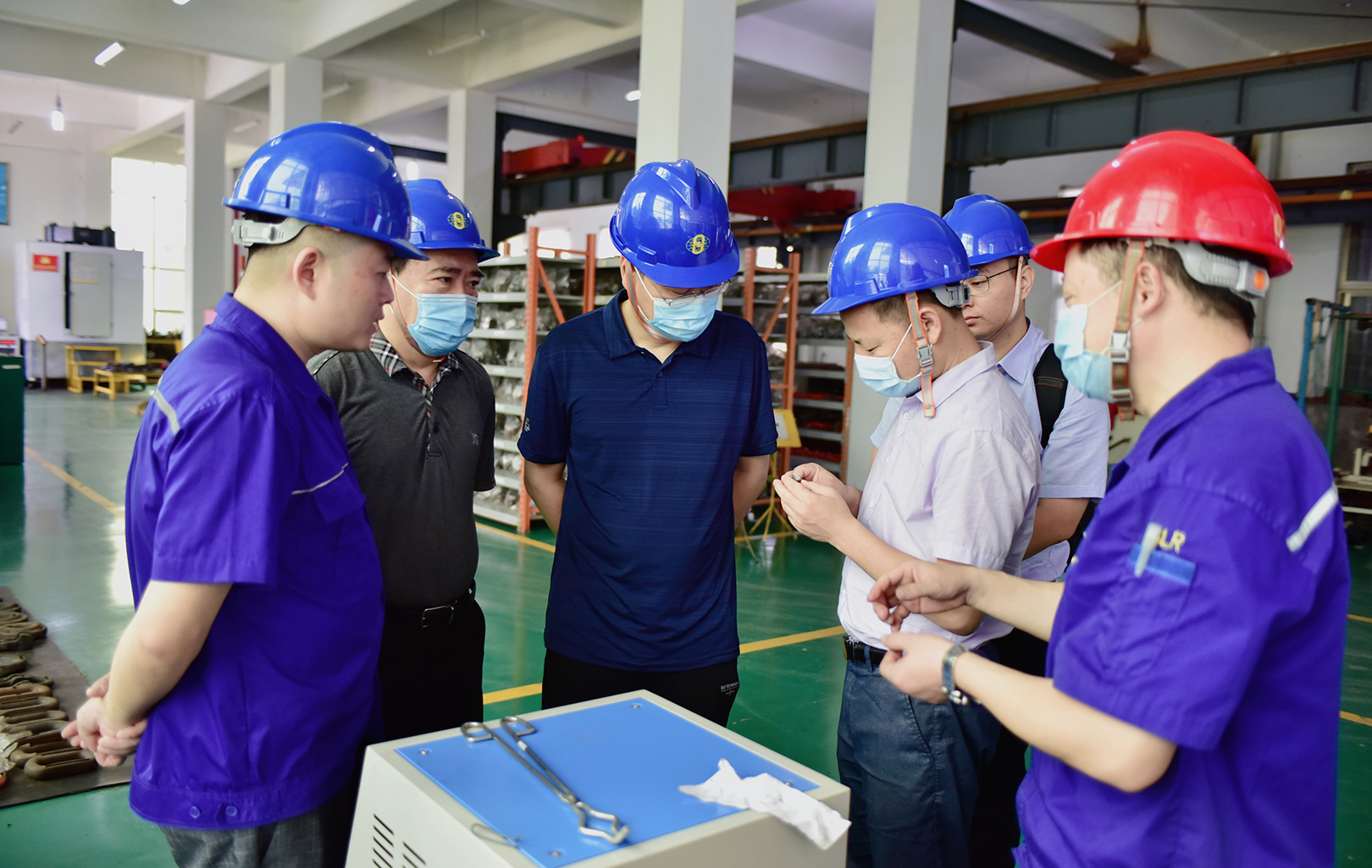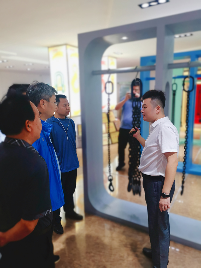 总经理杜大平、技术中心主任王秀刚等公司领导的陪同下,专家组对我公司主要生产分厂车间、关键生产工序、检测中心、产品展厅、研发中心等部门进行了深入的参观了解,详细了解了索具产品的生产检测工艺,对索具产品的研发、生产、检测、使用等方面进行了细致的询问了解。
