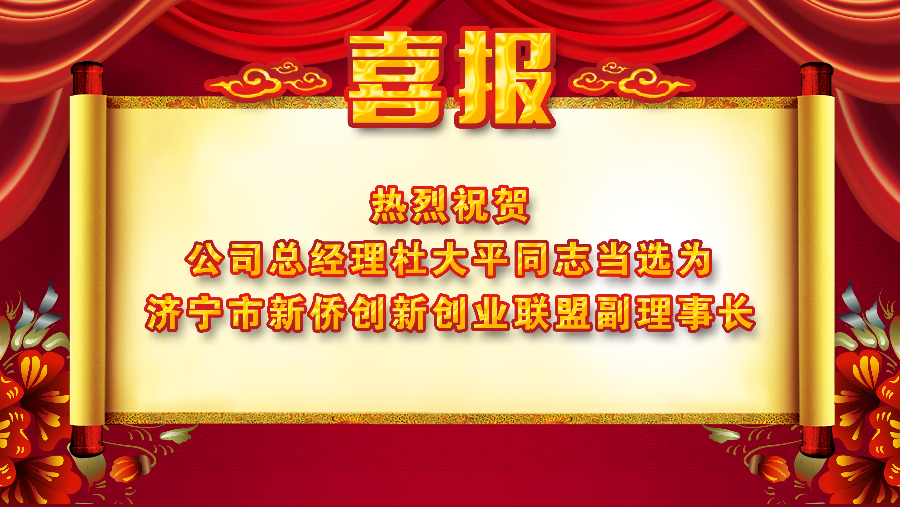 热烈祝贺公司总经理杜大平当选为济宁市侨创联盟副理事长