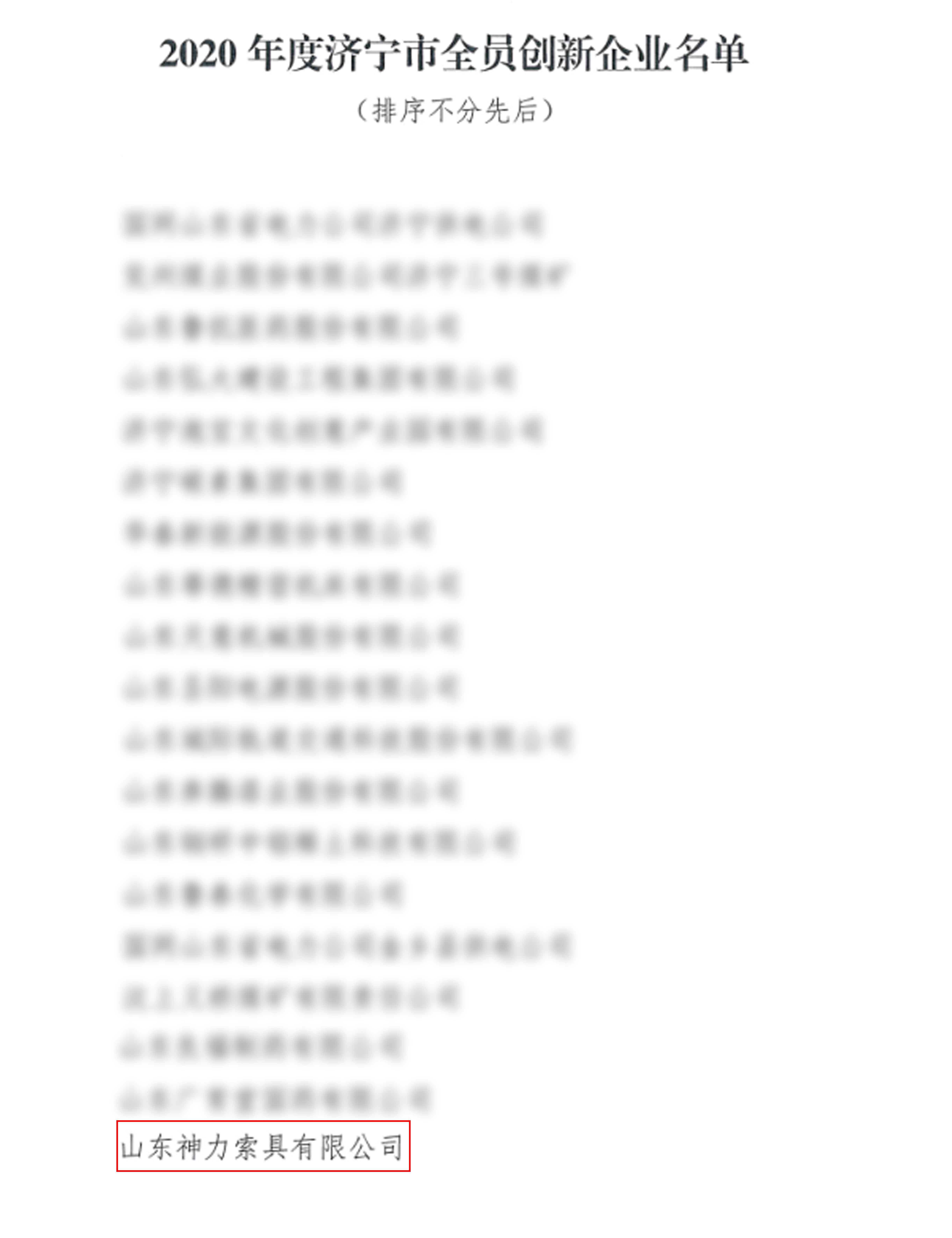 2020年度济宁市全员创新企业共19家企业入选。神力索具作为入选济宁市全员创新企业之一,公司还将获得10万元奖金。本次济宁市全员创新企业培育工作中,市总工会积极引导,动员激励全市广大企业、职工全面参与创新,释放全社会创新创业创造动能。