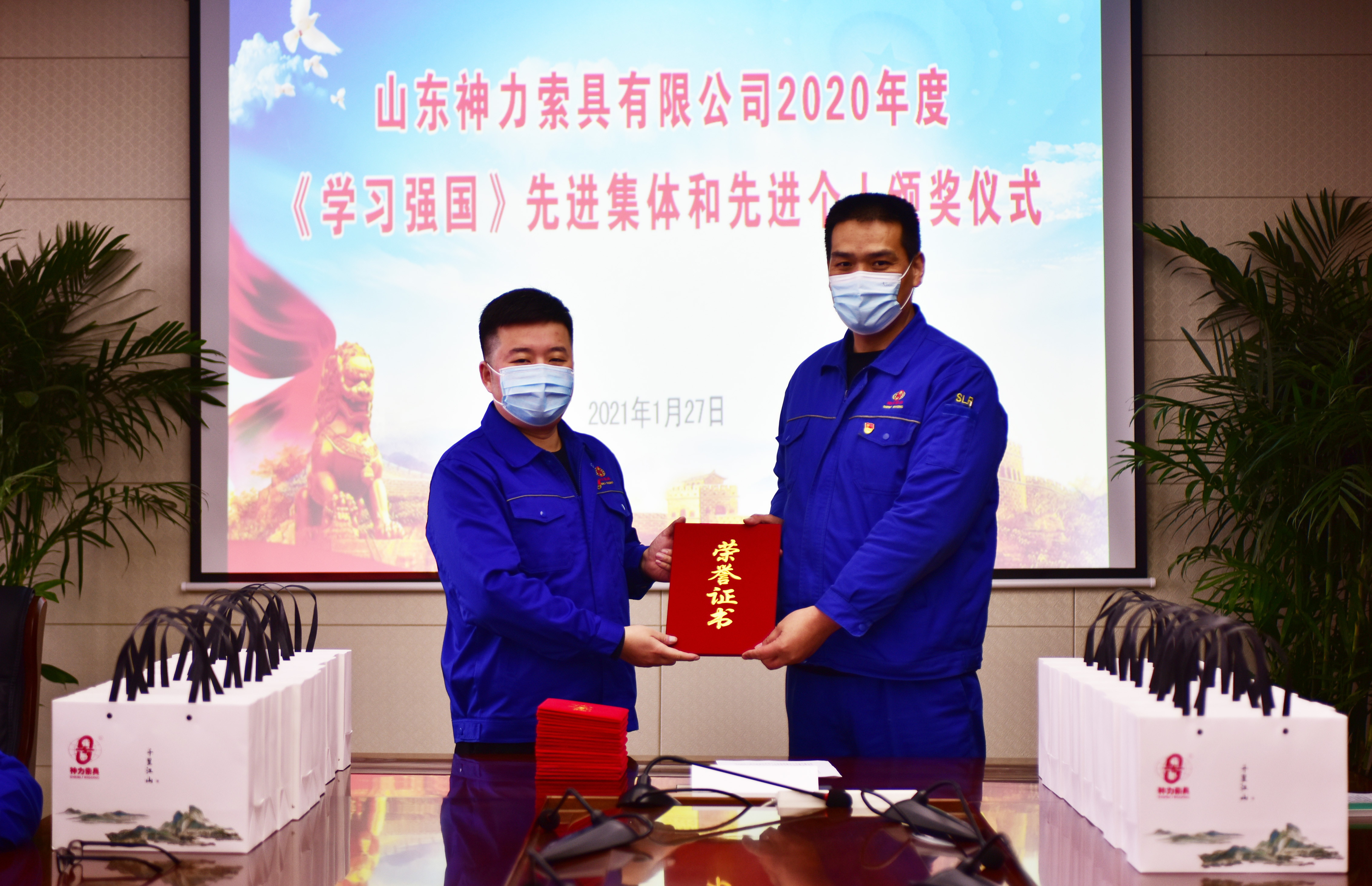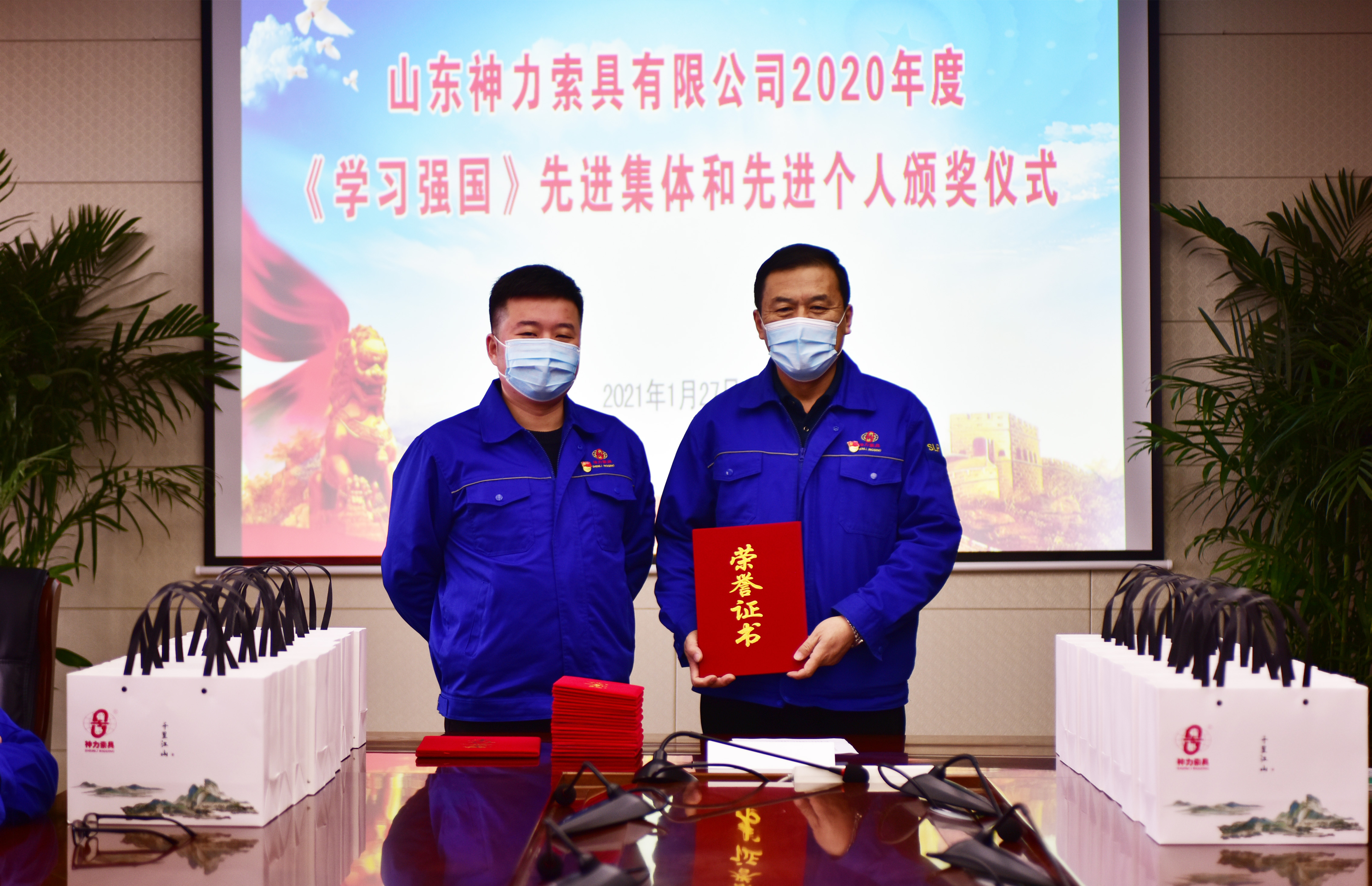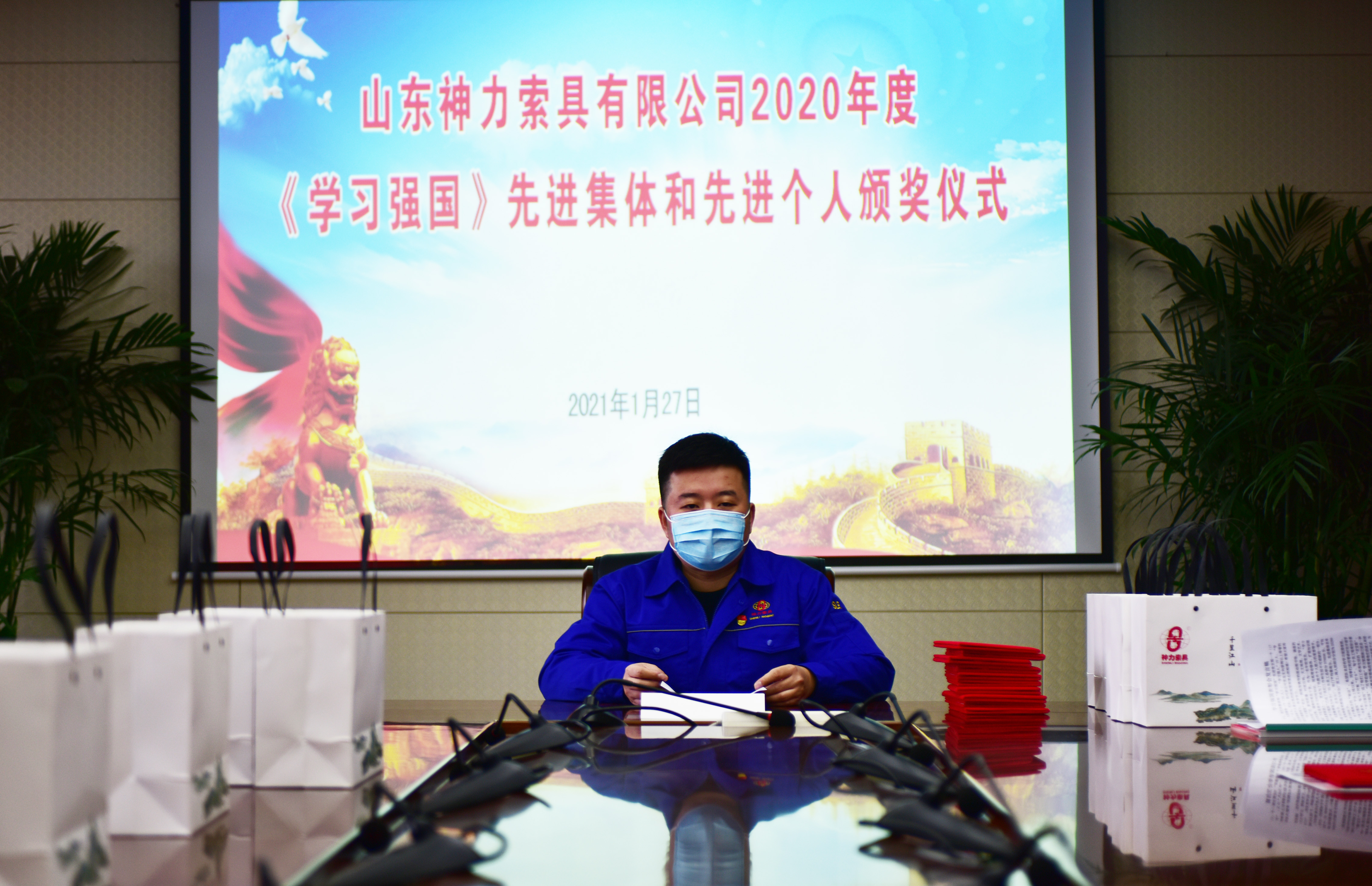 依据规定要求,截至去年年底,根据各部门学习总分数和个人学习总分数,评选出“学习强国”先进党支部一个,先进集体一个,“学习强人”10名,“学习达人”10名。“学习强国”学习平台工作小组副组长、总经理杜大平同志为获得先进集体的代表和先进个人颁发荣誉证书和精美学习礼品。