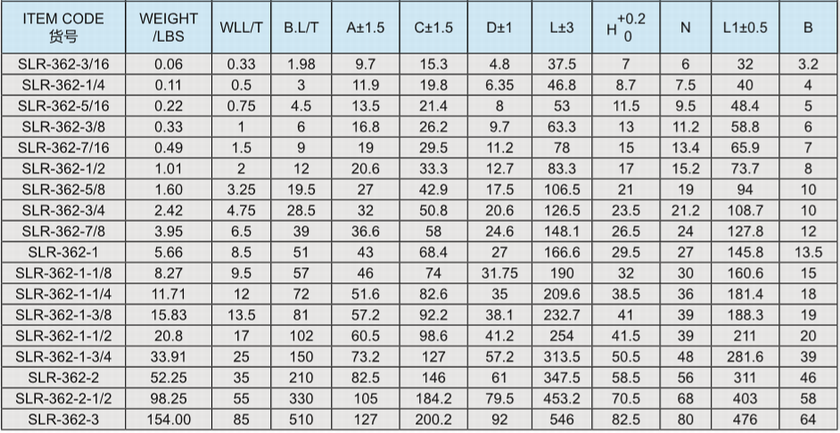 以上表格中工作拉力是基于0度受力方向(见上图)
