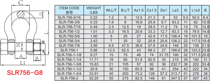 卸扣体和螺栓均采用高强度高韧性特殊合金钢,经过热处理。
