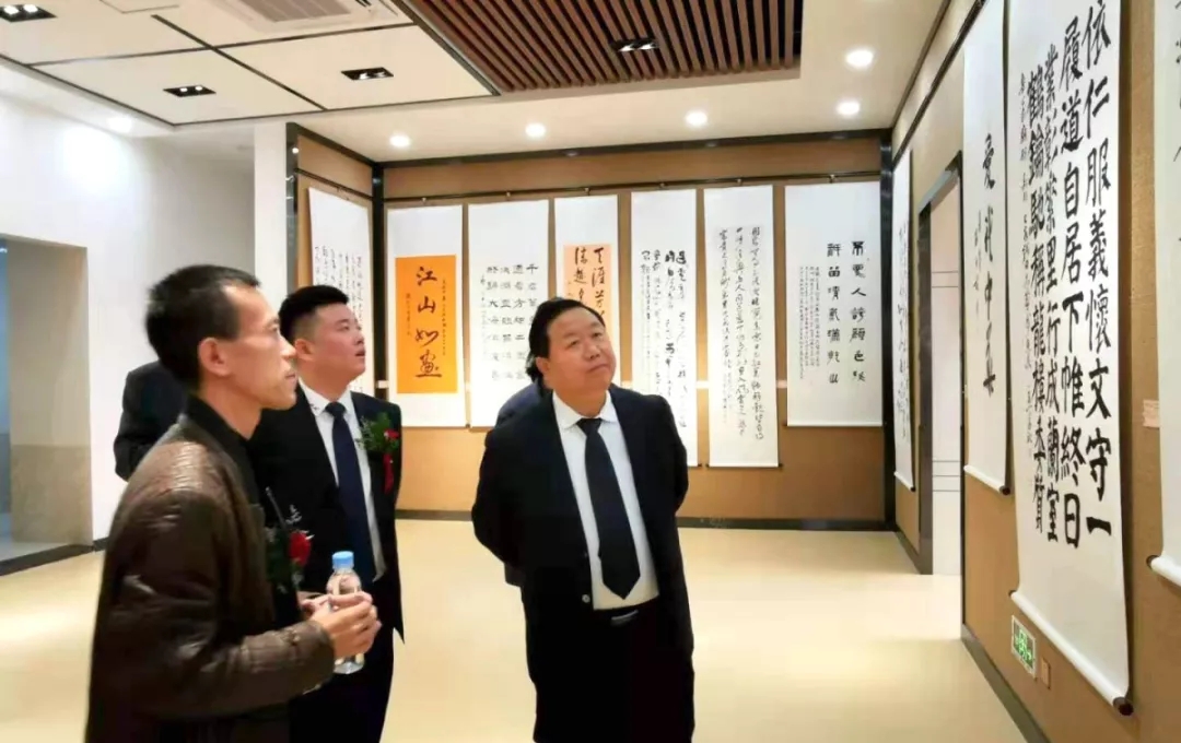 我公司作为这次齐鲁青年军旅书家联展的独家冠名单位,由公司董事长杜亚中先生和总经理杜大平先生组织了20余人书法爱好者参观团参加了开幕式。