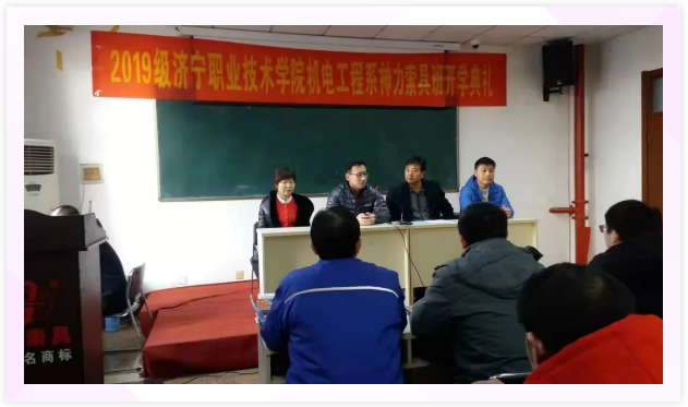 其后,济宁职业技术学院机电工程系秦主任进行了发言。秦主任讲到:此次校企联合是转变了传统教育思想,积极响应国家号召。深入贯彻落实了党中央、国务院决策部署和《国家职业教育改革实施方案》,适应产业升级和经济结构调整对技术技能人才的紧迫需求,把发展高等职业教育作为缓解当前就业压力、解决技能人才短缺的战略之举,要坚持系统化推进、质量型扩招、省、市、县(市、区)校企联动配合,加快培养经济社会发展急需的各类技术技能人才,让更多青年凭借一技之长实现人生价值,让三百六十行人才荟萃、繁星璀璨。