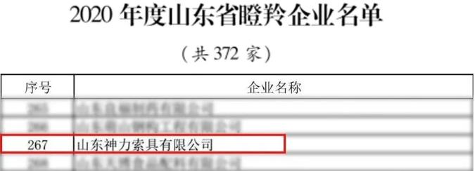 此次神力索具技更是被入选“山东省瞪羚企业”名单。以上种种荣誉都是对我公司在自主创新、发展规模、项目成果、未来潜力等方面综合实力的充分认可。我公司将充分利用“瞪羚企业”享受的各种扶持政策,如瞪羚般快速奔跑,持续成长,继续发挥企业优势,坚持创新驱动,助力推动我省新旧动能转换和经济高质量发展。