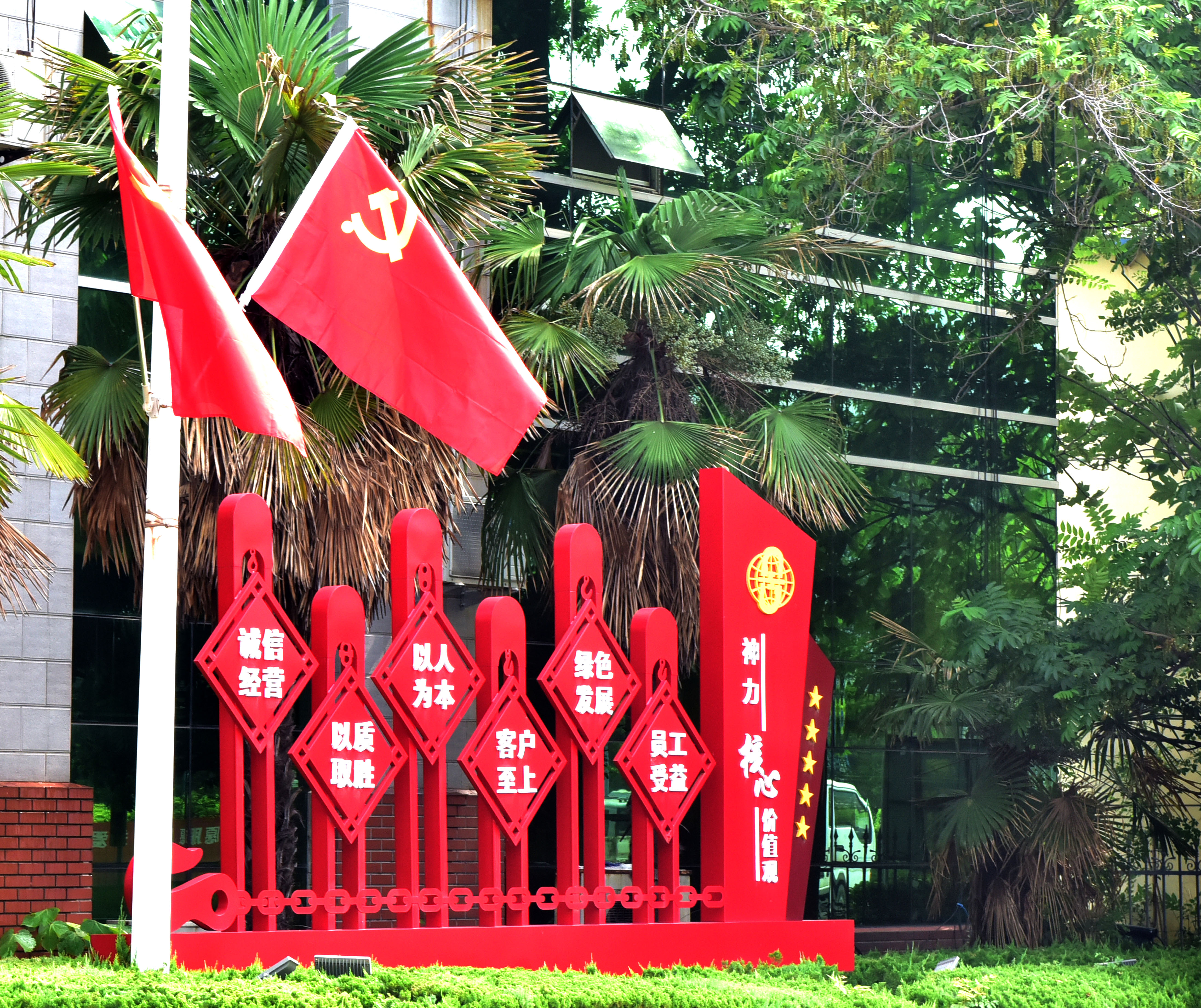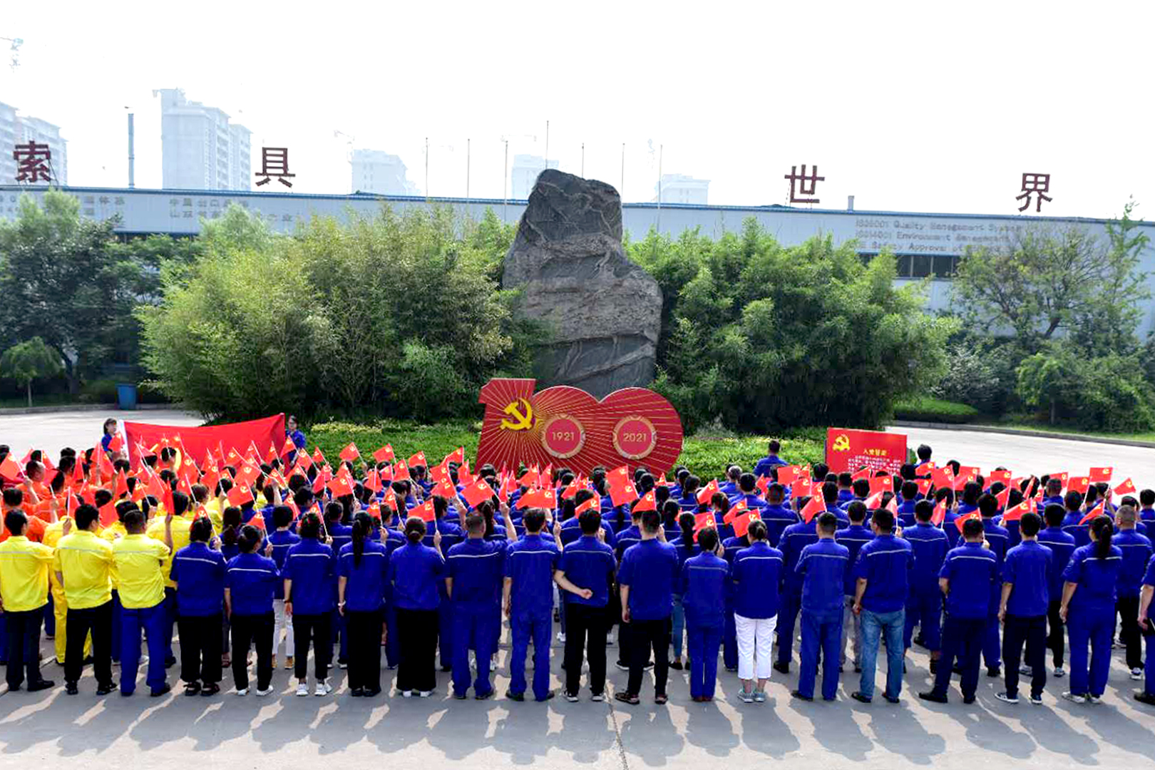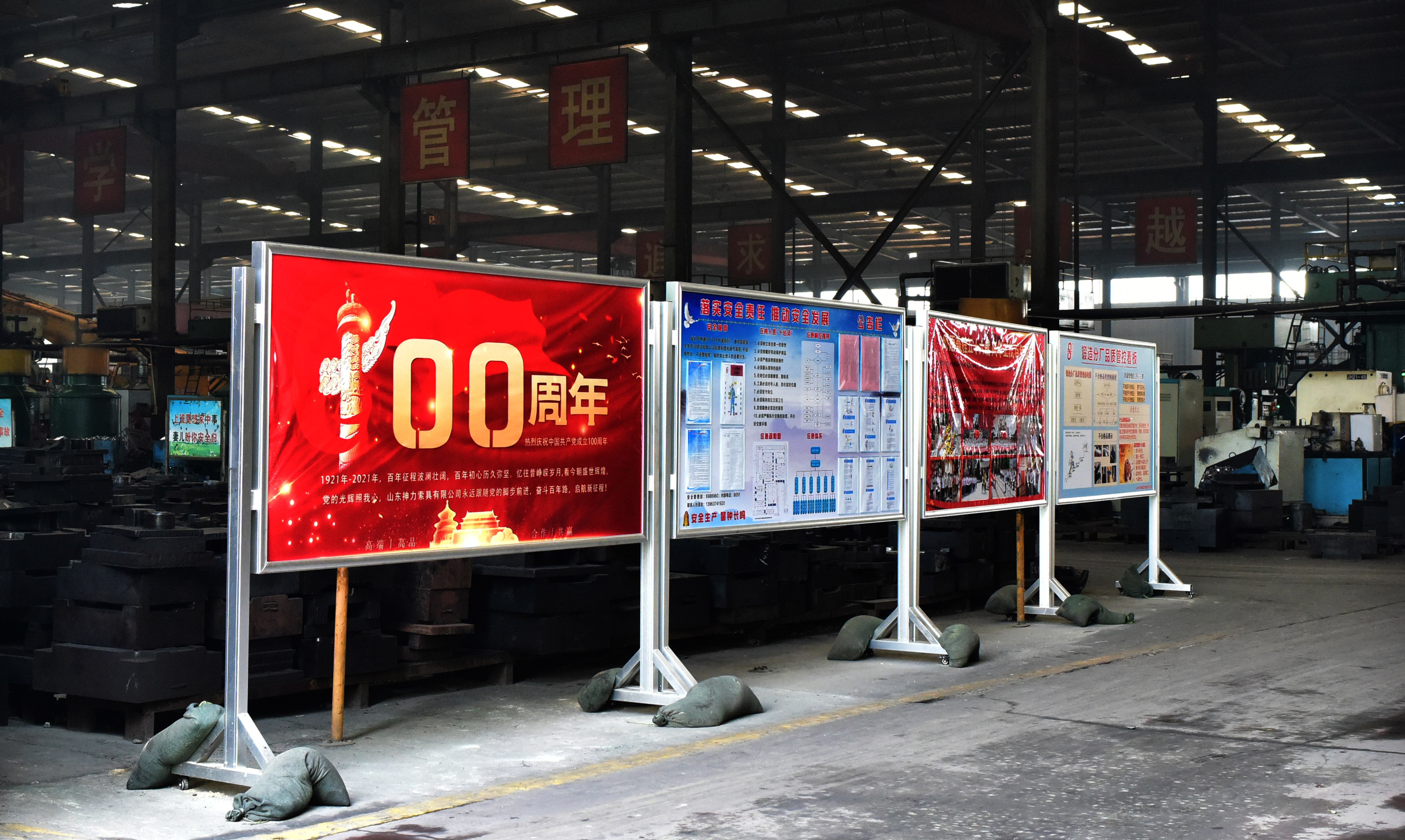 走进神力索具,首先映入眼帘就是中国共产党成立100周年庆祝活动标识。活动标识由党徽、数字“100”“1921”“2021”和光芒线组成,生动展现中国共产党团结带领中国人民不忘初心、牢记使命、艰苦奋斗的百年光辉历程。此外,公司在道路两旁、车间等场所设置了党建工作宣传标语,持续提高党建文化的辐射力、渗透力和感染力;同时,在党员活动室打造党建文化墙,营造党建文化氛围,为实现公司党建的常态化、大众化提供新平台,积极营造全员学习、全员了解、全员抓党建的良好氛围,使党建工作展示出新的活力和面貌。