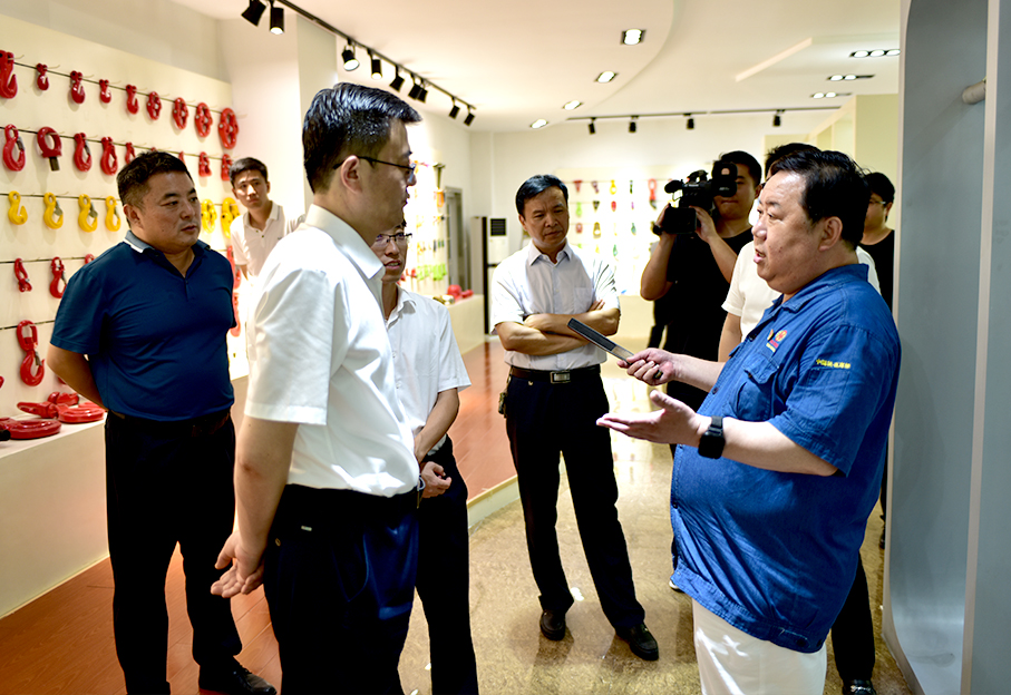 7月26日,济宁经济技术开发区党工委书记、管委会主任朱瑞显一行来到神力索具进行调研,神力索具董事长、党支部书记杜亚中就公司发展、产品研发、市场开拓、公司党建等方面作了详细汇报。