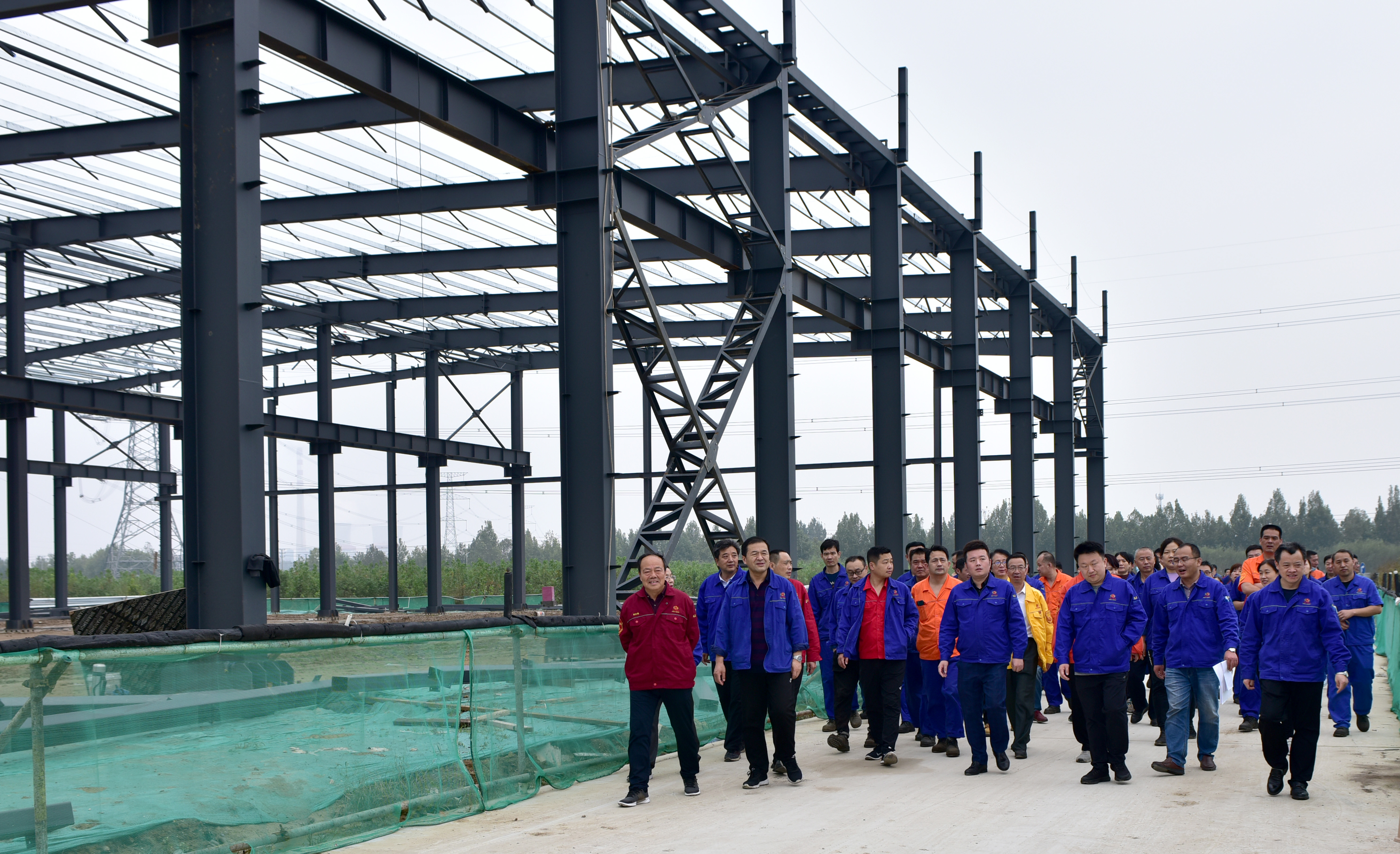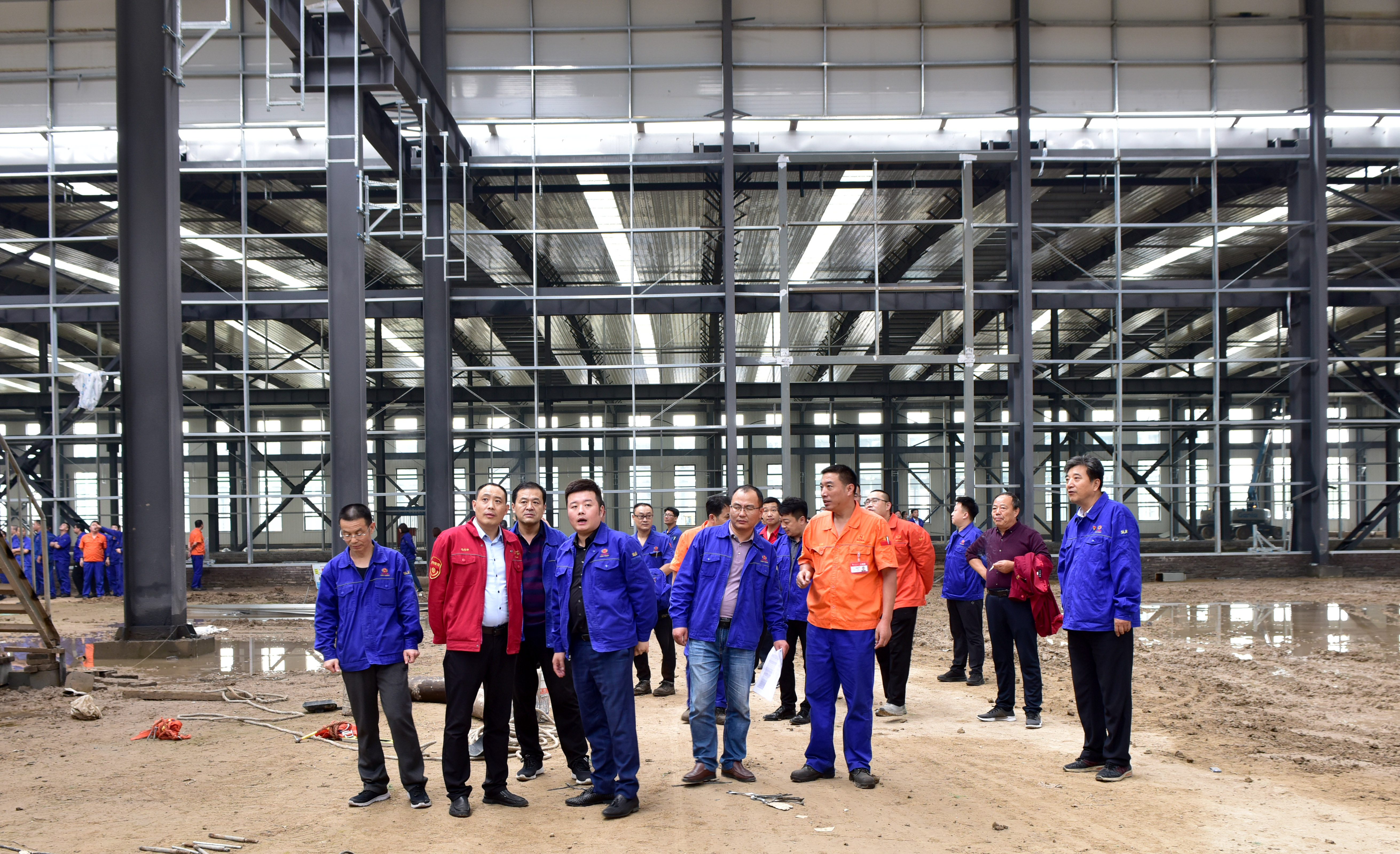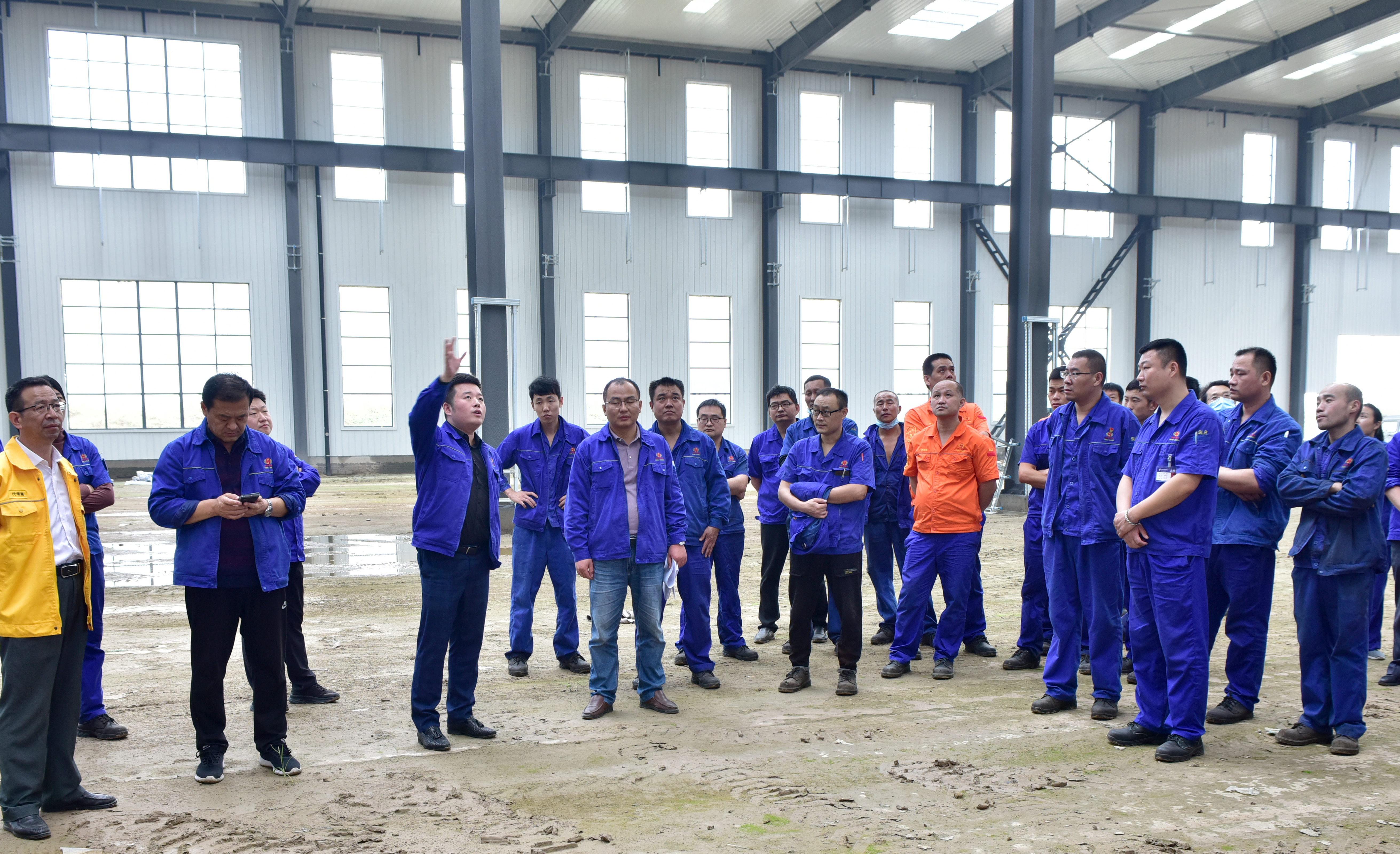 在建设中的厂房内,总经理为参观团队人员进一步讲解了新厂区建设的规划定位是:绿色示范工厂,自动化与机械化紧密配合,智能制造、工业化与信息化深度融合的现代化企业。