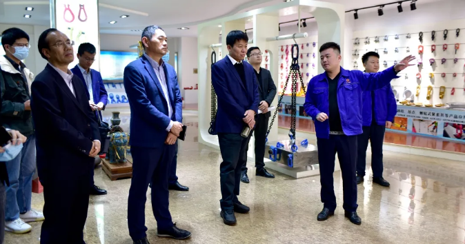 在公司产品展馆,总经理杜大平为调研组一行详细介绍了神力索具的主营产品及其应用领域。他表示,神力索具作为经开区唯一一家入选济宁市工业互联网示范标杆企业培育库的企业,面向十四五规划,神力将通过“三个数字化”建设,联合海尔卡奥斯物联平台加快向“智能制造方向”转变,把企业打造成索具行业互联网平台新标杆!