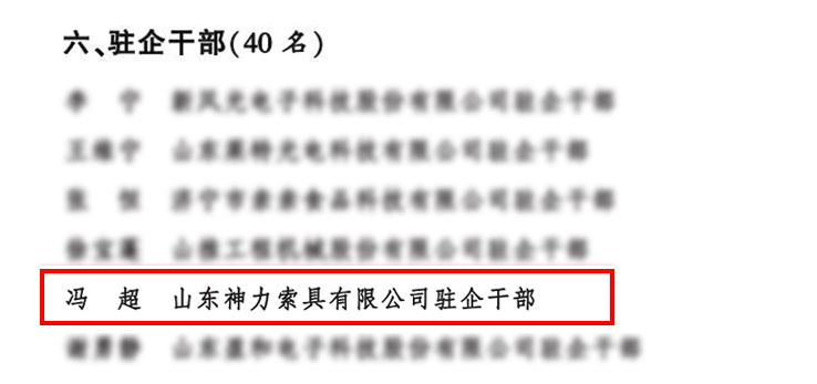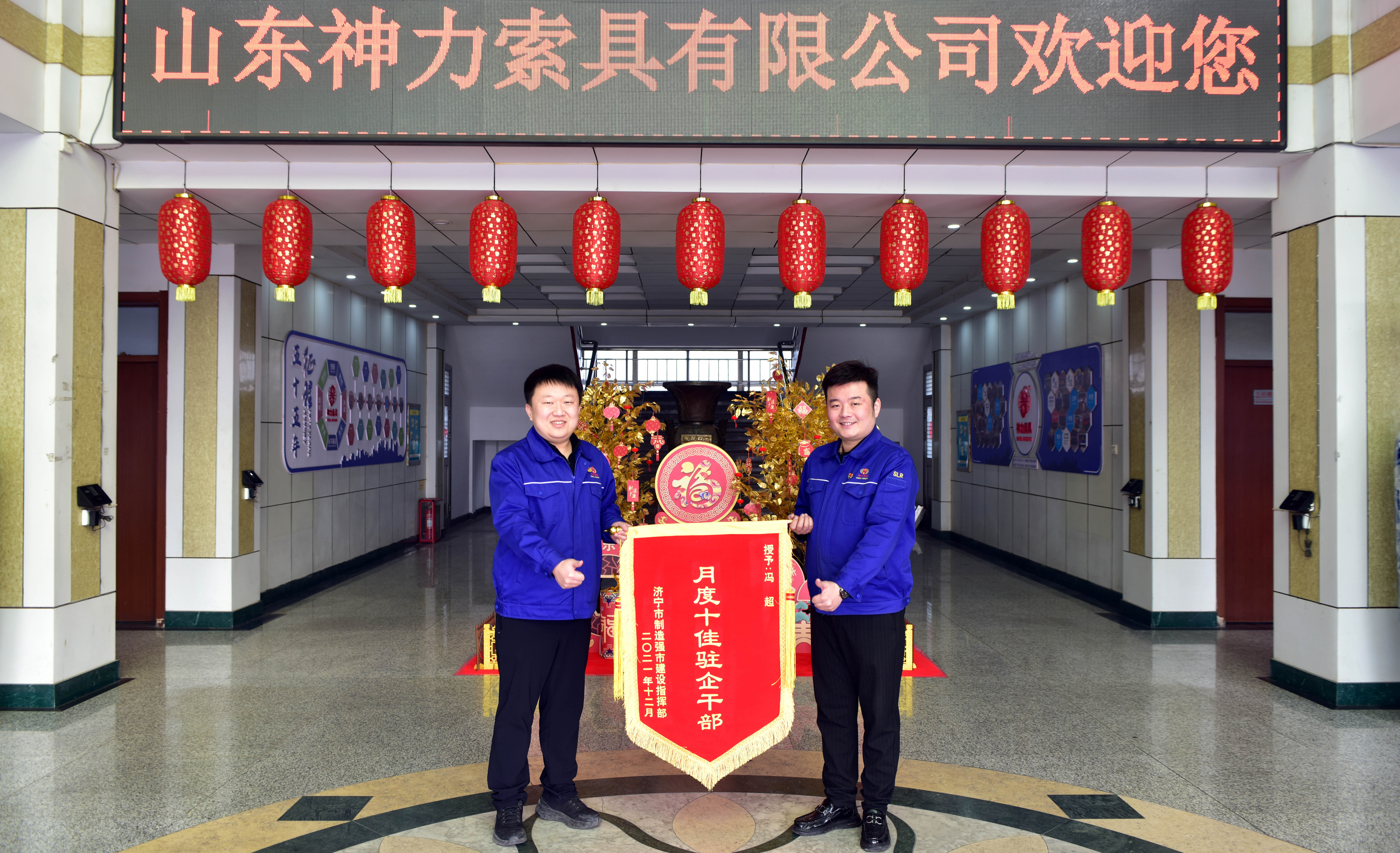 冯超同志针对神力索具的发展难题,以倾心服务,让企业轻装上阵,全力助推企业高质量发展。驻企至今,先后荣获2021年12月十佳驻企干部、济宁市2021年度助企攀登工作表现突出个人、济宁市经济技术开发区2022年第一季度优秀驻企干部等荣誉称号。