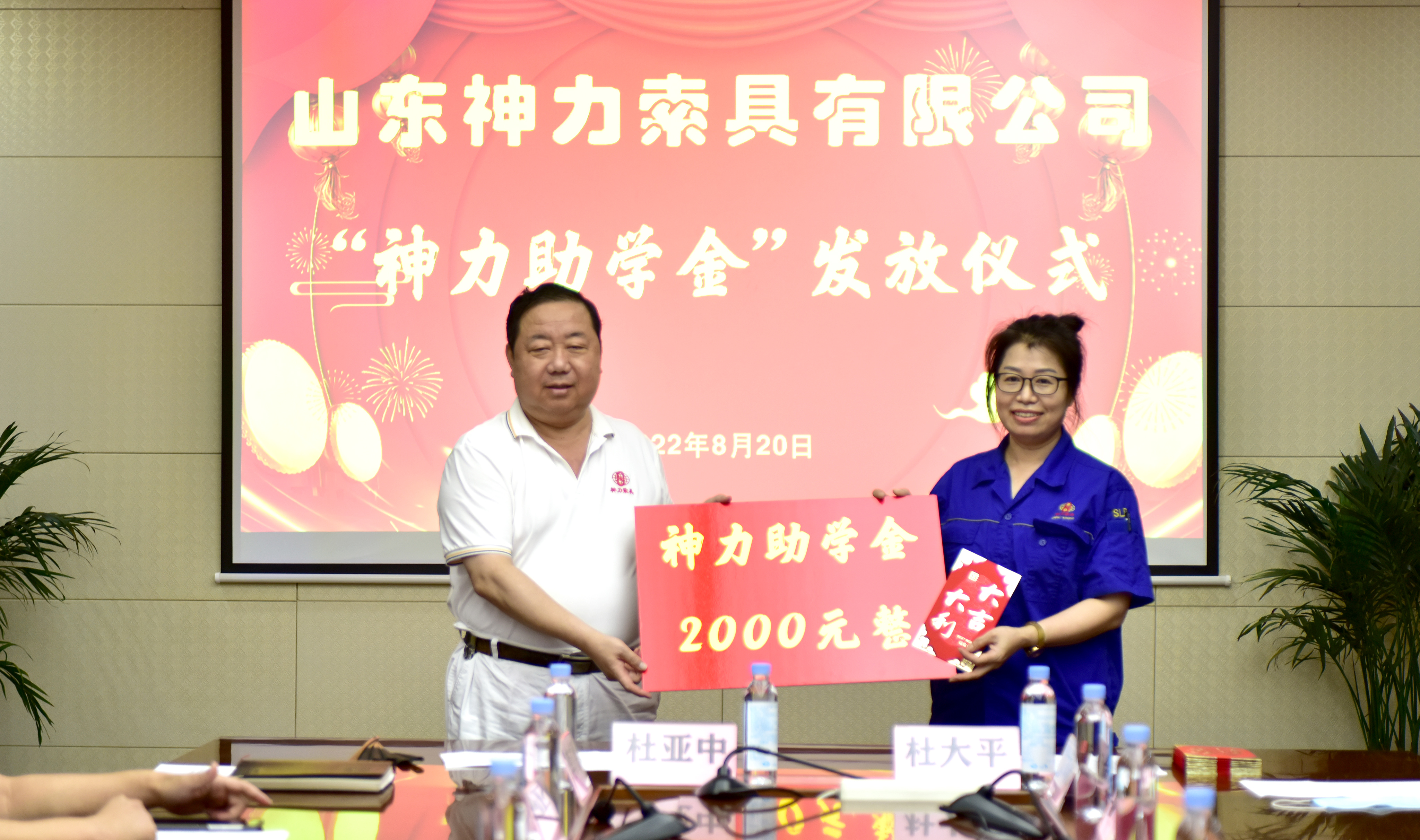 8月20日上午,旺财28APP官方版-旺财28APP最新版-pgwc有限公司2022年“神力助学金”发放仪式在公司办公楼四楼会议室举行。神力索具董事长杜亚中、总经理杜大平等公司领导及12位受助学生家长参加本次仪式。