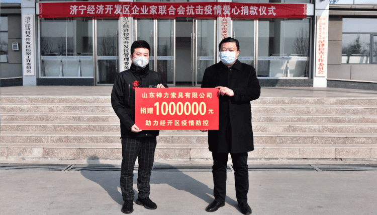 2020年全球新冠肺炎疫情爆发,怀着对国家、对民族的崇高使命感和强烈责任感,公司董事长杜亚中、总经理杜大平充分发挥企业家精神,先后向济宁市慈善总会捐赠100万元;向济宁经开区疫情防控指挥部捐赠总价值36万元的荣耀牌笔记本电脑100台;与济宁市0537应急救援队(济宁社会组织中心红帆志愿服务队)对接,捐赠总价值11000元的防疫消杀设备、消毒液等物资。