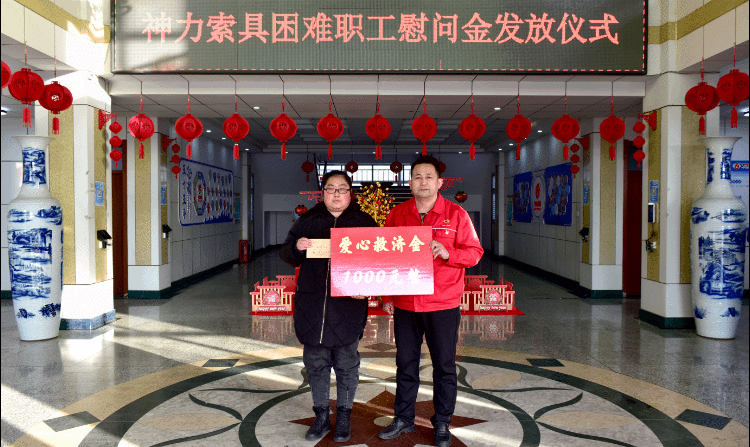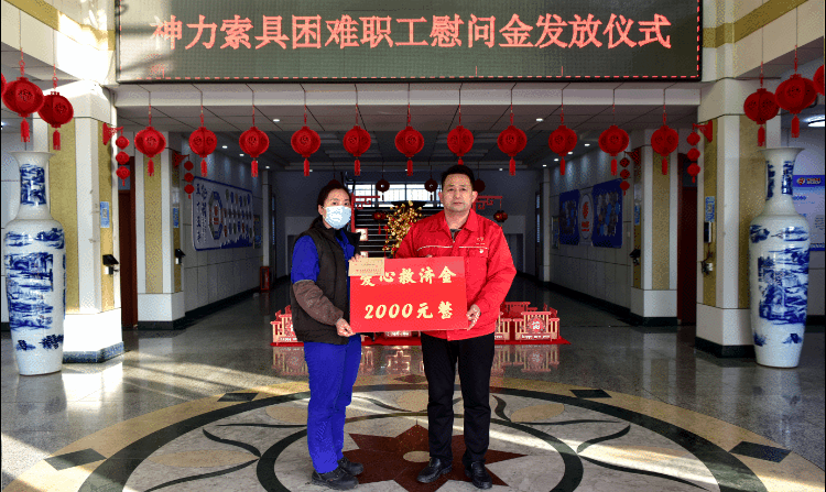 值此23年春节来临之际,在神力索具董事长杜亚中、总经理杜大平授意下,公司工会在全公司范围内组织发布了困难职工申报工作,经过为期一周的病例、住院记录、缴纳票据审查以及实地家访,共确定15名因本人或近亲属大病等原因致困的职工。公司根据实际情况为其发放1000元、2000元的爱心救济金,本次共计发放救济金17000元。