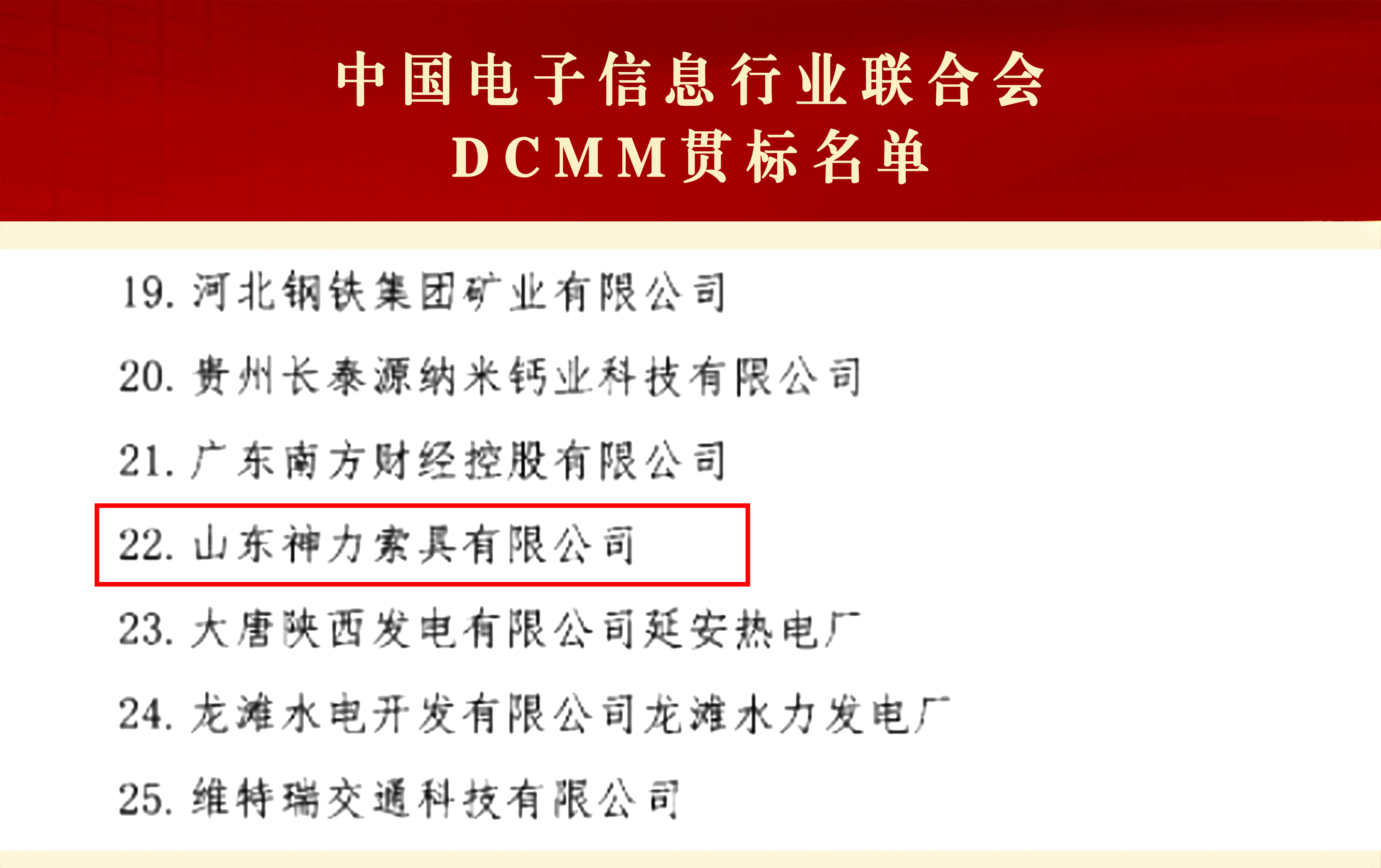 近日,中国电子信息行业联合会公布了最新一批获得国家数据管理能力成熟度等级证书的单位名单。经过赛迪检测认证中心有限公司的专业评估、中国电子信息行业联合会组织的专家评审,神力索具获评国家数据管理能力成熟度为受管理级(二级)认证单位,成为全国索具行业首家获评数据管理能力成熟度二级的企业。