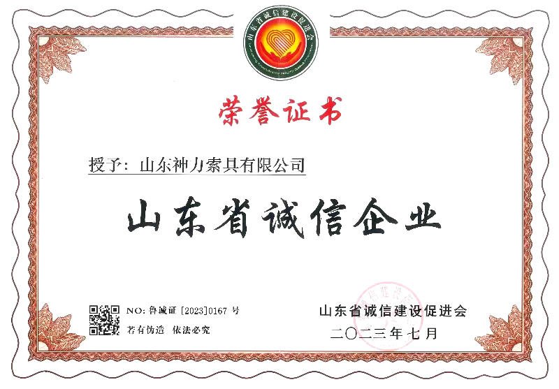 新时代催人奋进,高质量发展呼唤“诚信治企”,神力索具将依托荣誉砥砺前进,深入贯彻《企业诚信评价通则》及《诚信企业家评价通则》等相关要求部署,持续推动企业制度化、标准化、规范化诚信建设落地,弘扬诚信文化,凝聚诚信共识,汇聚诚信力量,打造成为省市两级诚信强企,助力建设高质量发展强省!