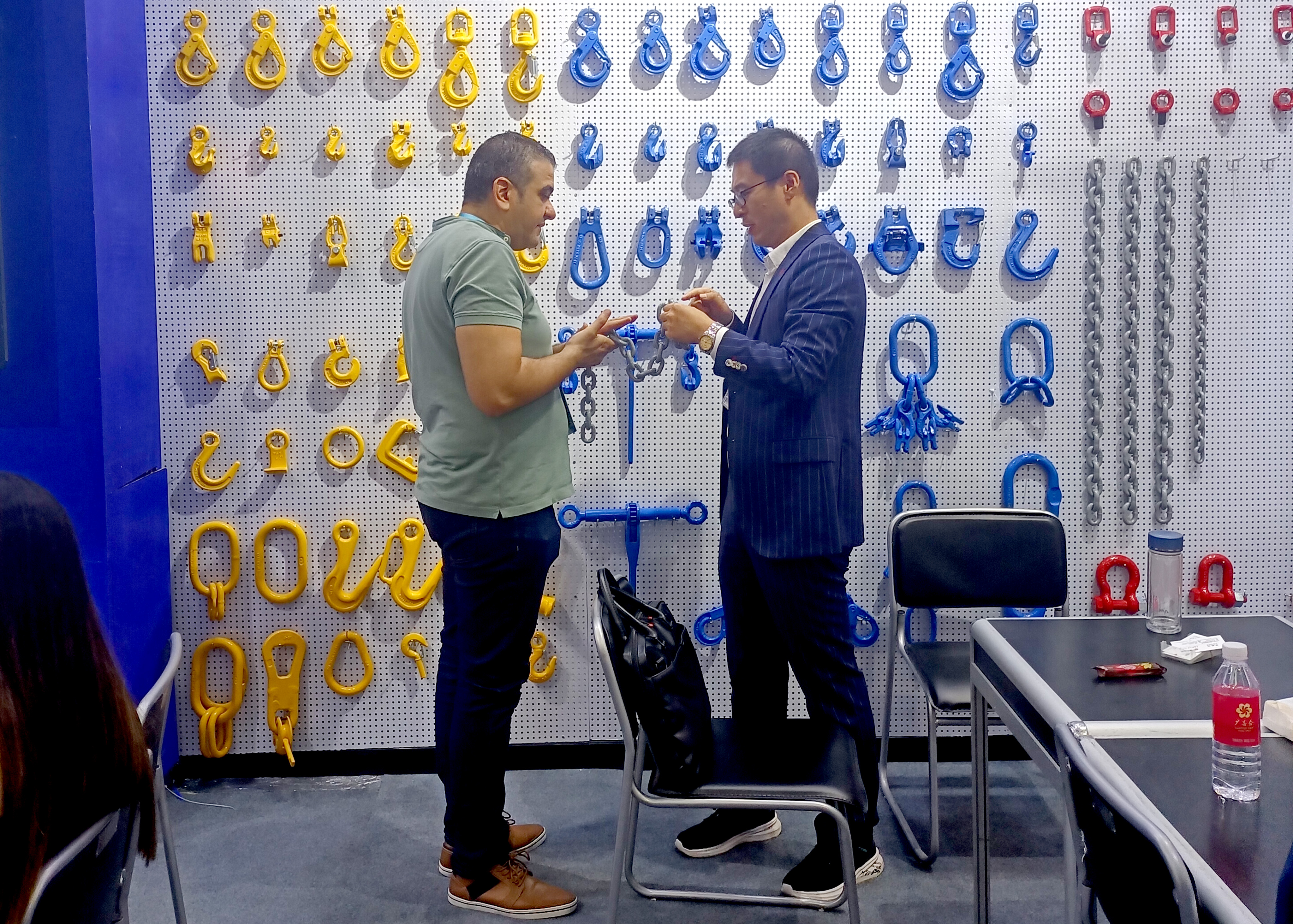 样品准备、展厅设计、宣传图册制作、重点客户邀约、海外社交媒体预热……神力索具总经理助理兼销售部长翟小勇,参加广交会近30届,对于广交会的准备工作早已游刃有余,此次带队参展,精心挑选了公司新研发的吊钩、吊点,100级高档链条及新型矿用锻造件样品;同时,神力索具也将通过此次广交会向全球客户展现人工智能、大数据、5G技术等在公司生产管理中的应用,全方位展示新神力的新发展成果。