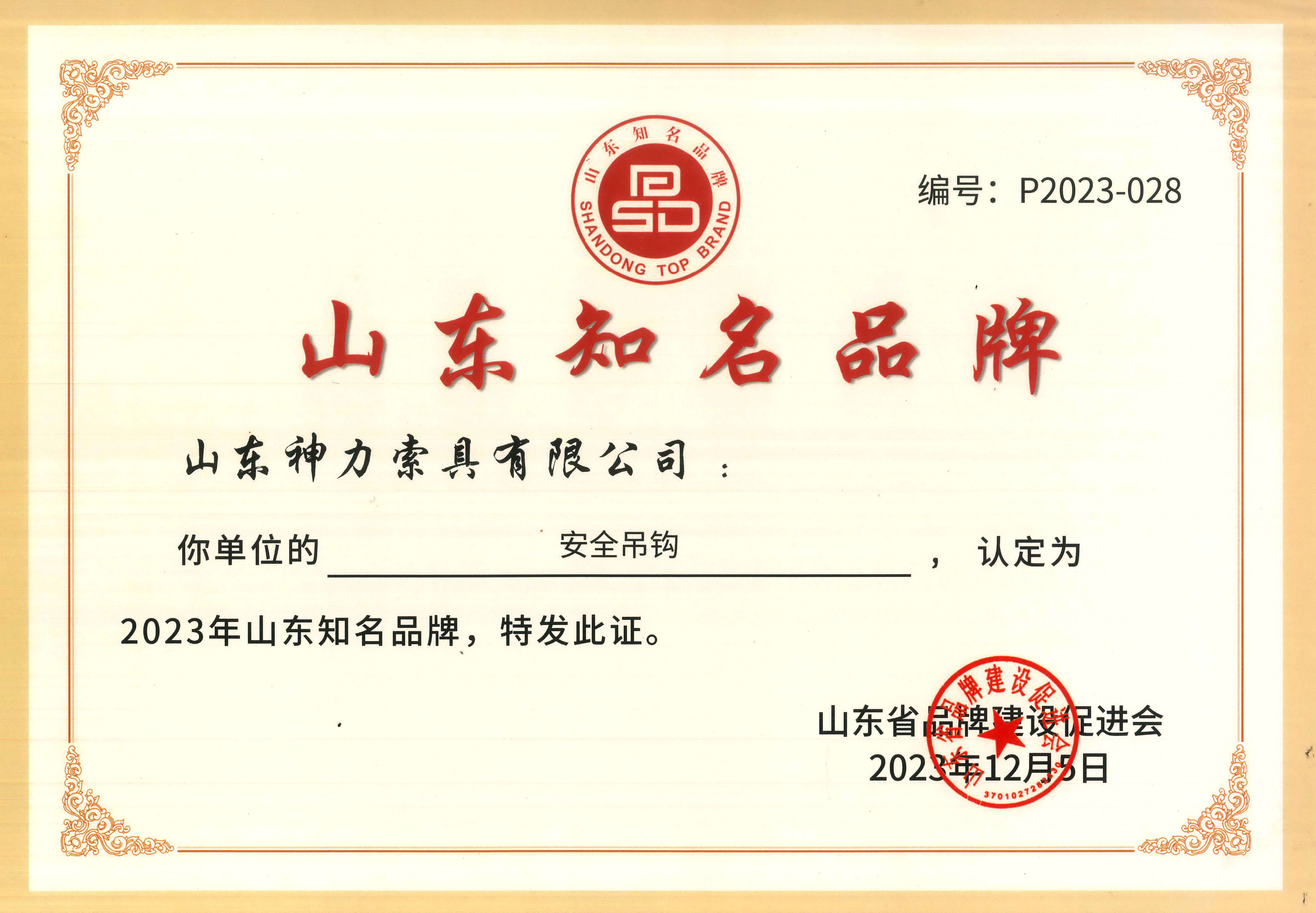 根据《山东知名品牌认定管理办法》的规定,遵循科学、客观、公开、公平、公正、自愿、不收费的原则,经组织申报、资格审查、大数据信息挖掘、信息化系统平台评审、专家评审、认定专家委员会审议等工作程序,神力索具安全吊钩榜上有名,光荣入选“山东知名品牌(产品)认定名单”。