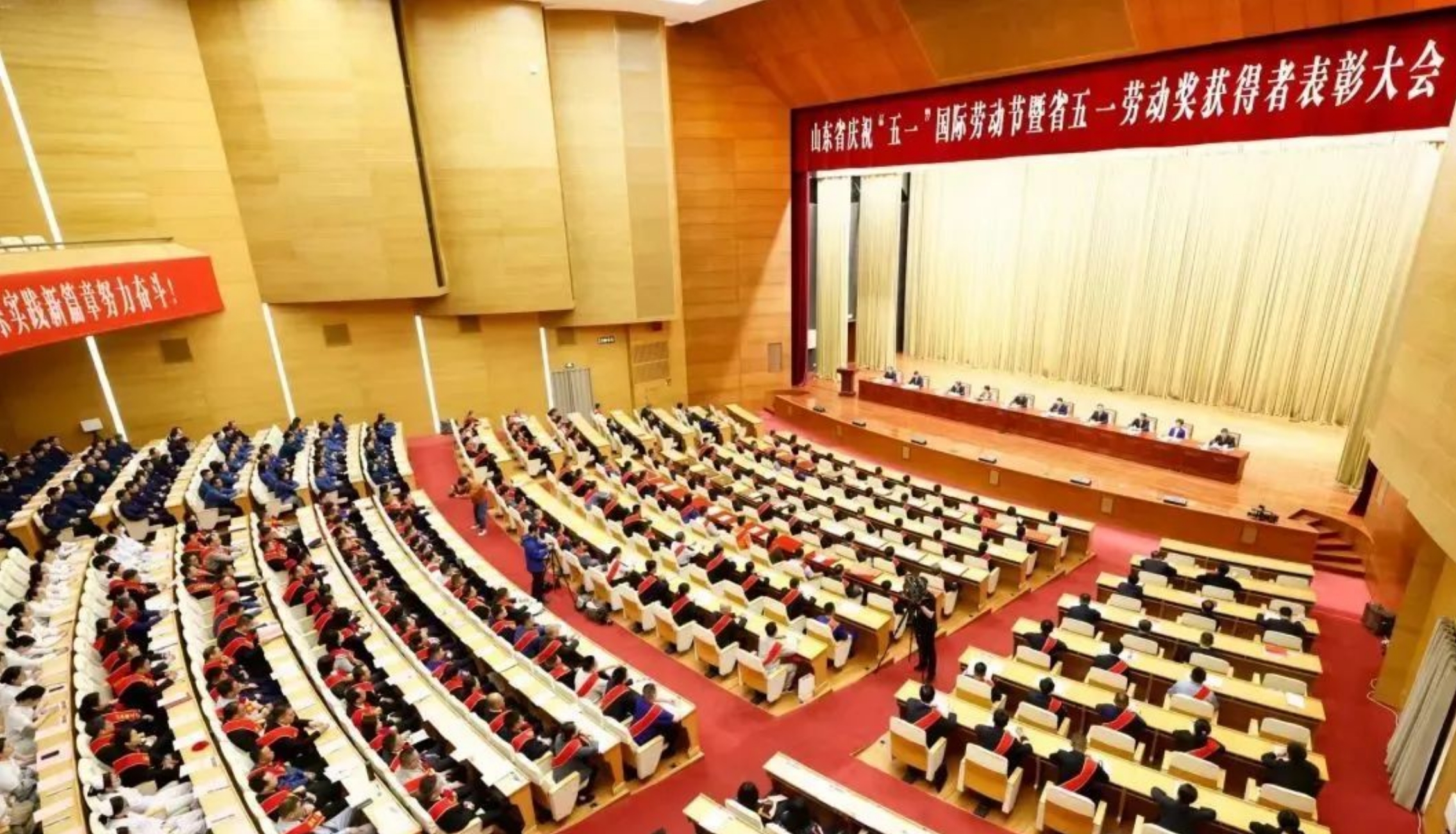 近日,为进一步深入学习贯彻党的二十大精神,落实习近平总书记关于工人阶级和工会工作的重要论述,大力弘扬劳模精神、劳动精神、工匠精神,动员激励广大劳动群众担当作为、团结奋进,山东省庆祝“五一”国际劳动节暨省五一劳动奖获得者表彰大会在山东大厦举行。