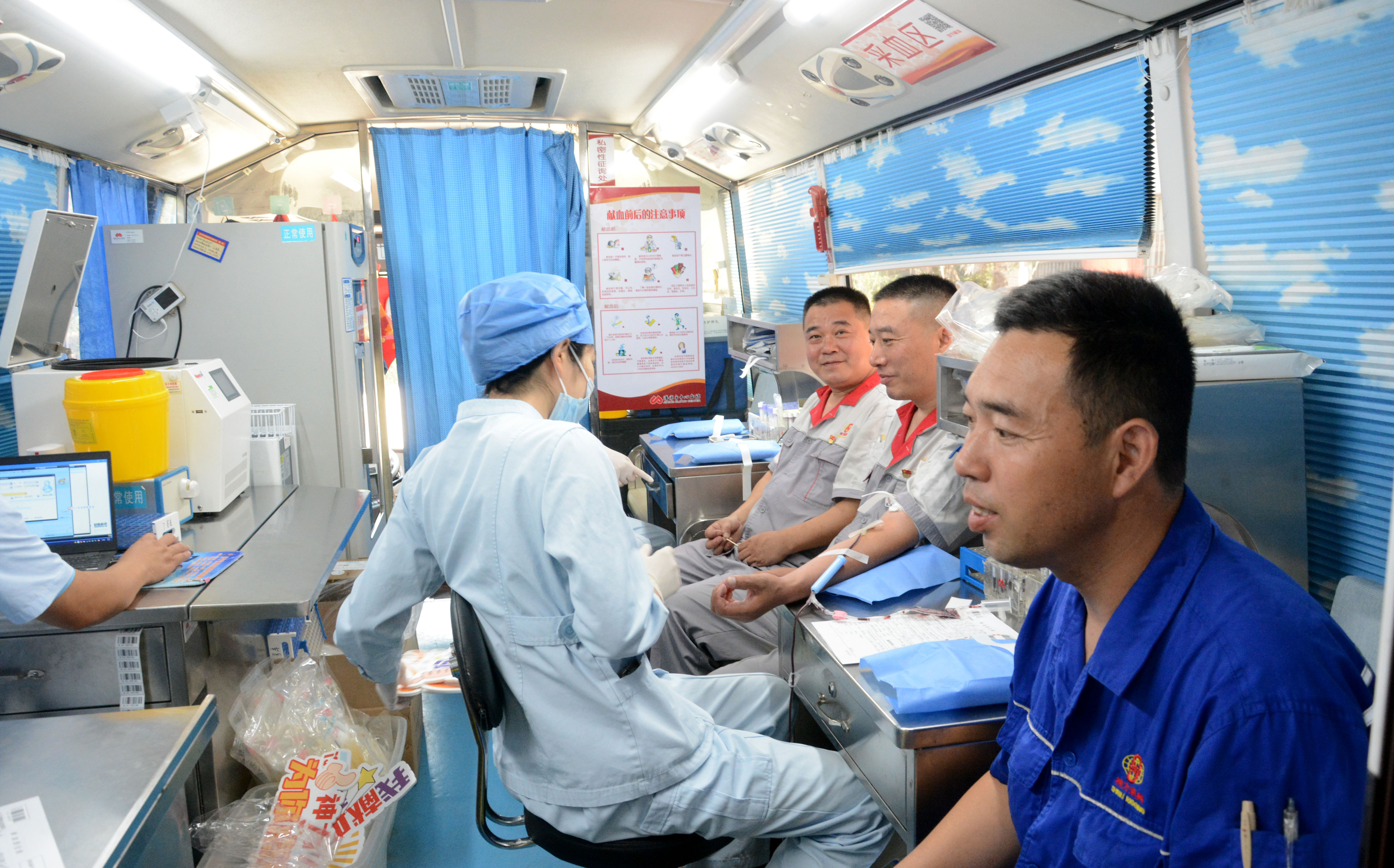 活动现场,在公司董事长兼总经理杜大平的带领下,各部门科室的员工纷纷报名、踊跃参加!献血志愿者在工作人员的指引下,井然有序地进行填表、验血、献血,并认真聆听注意事项。随后,符合献血条件的志愿者陆续进行献血。