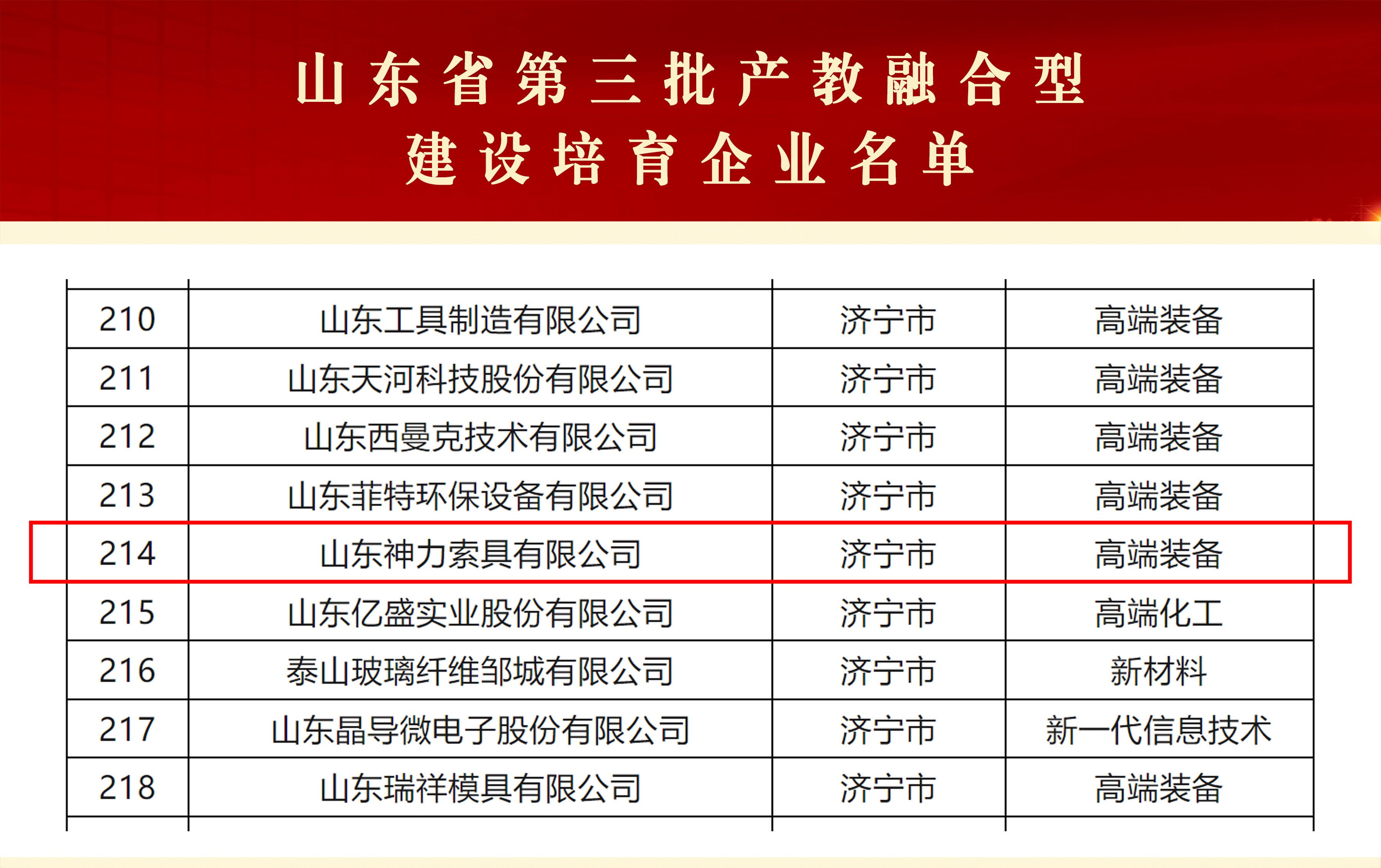 旺财28APP官方版-旺财28APP最新版-pgwc有限公司(以下简称“神力索具”)在近日公布的山东省第三批产教融合型建设培育企业名单中成功入选。这一荣誉标志着神力索具在推动职业教育与产业实践深度融合方面获得了官方的高度认可,彰显了公司在促进教育链、产业链、创新链有机衔接方面的卓越贡献。