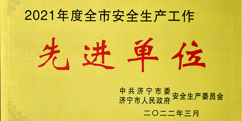 神力索具荣获济宁市“2021年度全市安全生产先进单位”称号