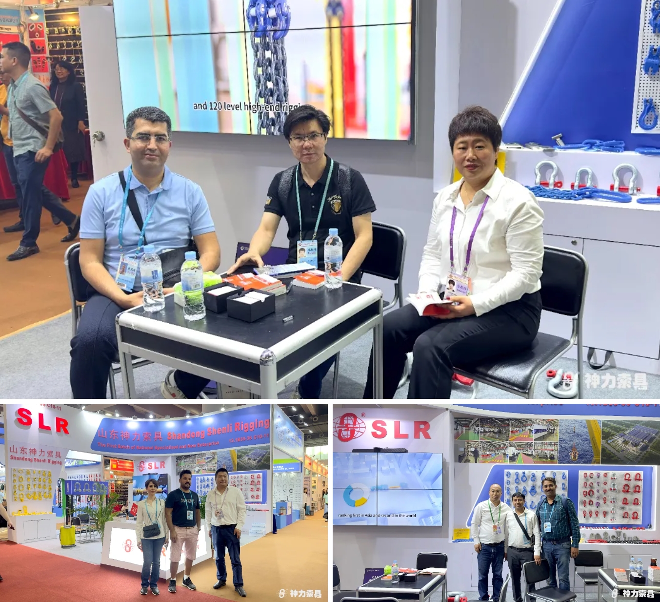 展会现场,神力索具销售团队及技术专员详细、周到地为到访的新老客户讲解神力索具的新产品、新技术,并将神力索具绿色智能新工厂科研能力、生产能力、产品结构等情况进行了沟通交流。