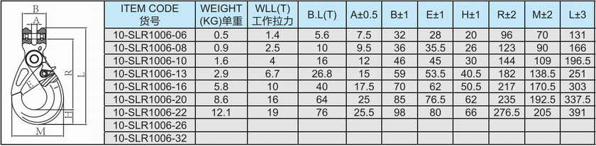 常规标记:10-10  WLL 4 T  CE  SLR  + BATCH NUMBER(批号)