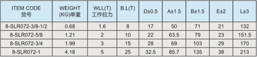 常规标记:3/8-1/2 WLL1.6T CE SLR + BATCH NUMBER(批号)