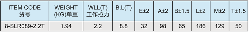 ◇ 与吊带和EN818-2标准80级链条配合使用。