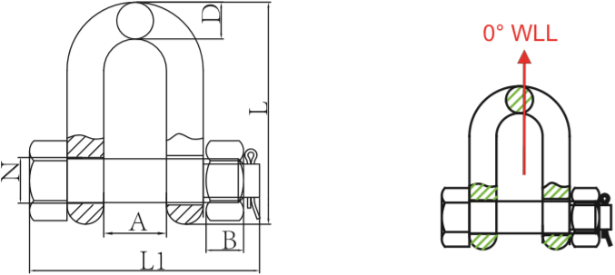 卸扣体:中碳钢 螺栓:合金钢