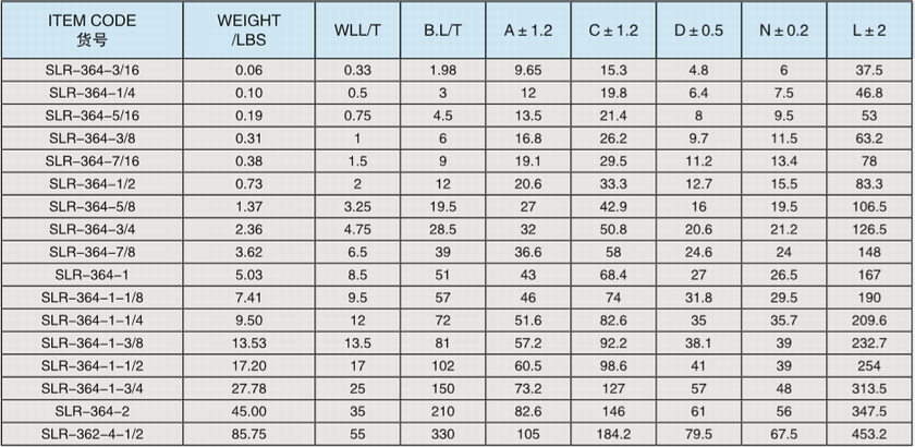 以上表格中工作拉力是基于0度受力方向(见上图)